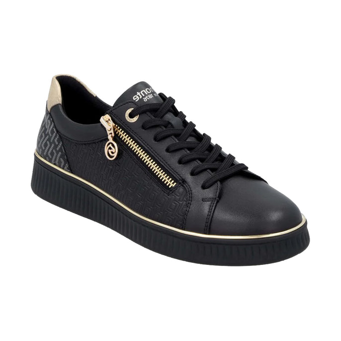 The Remonte D2E00 is a stylish black and gold sneaker that blends fashion with everyday comfort. It features a lace-up front with a functional side zipper for easy wear, plus Remonte’s Lite ‘n Soft technology for a lightweight feel and cushioning, removable insole. With a relaxed fit and breathable linings, these shoes are ideal for running errands or enjoing a weekend stroll.