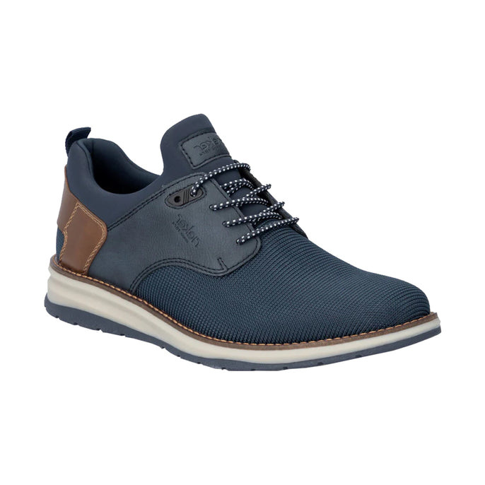 Everyday comfort at its best! These navy-brown Rieker shoes feature an easy-on bungee cord, a grippy outsole for secure steps, and an extra-soft insole. Slip on and go!